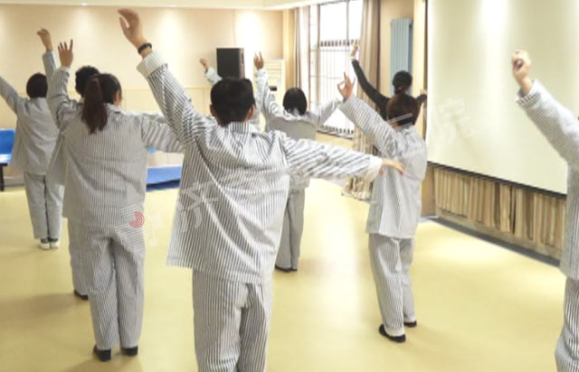 ③对于情绪低落、沉默寡言、情感淡漠、孤独退缩的患者,组织他们参与文娱和文体活动,包括唱歌、做操以及练“八段锦”等。